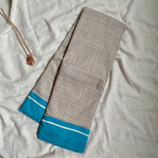 Sold outChanderiSilk BeigeBlue Saree