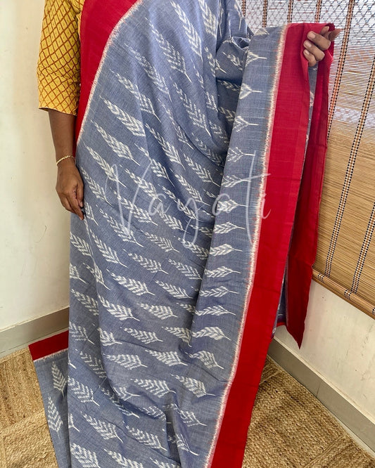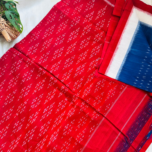 Ikkat BlueRed Handloom Saree