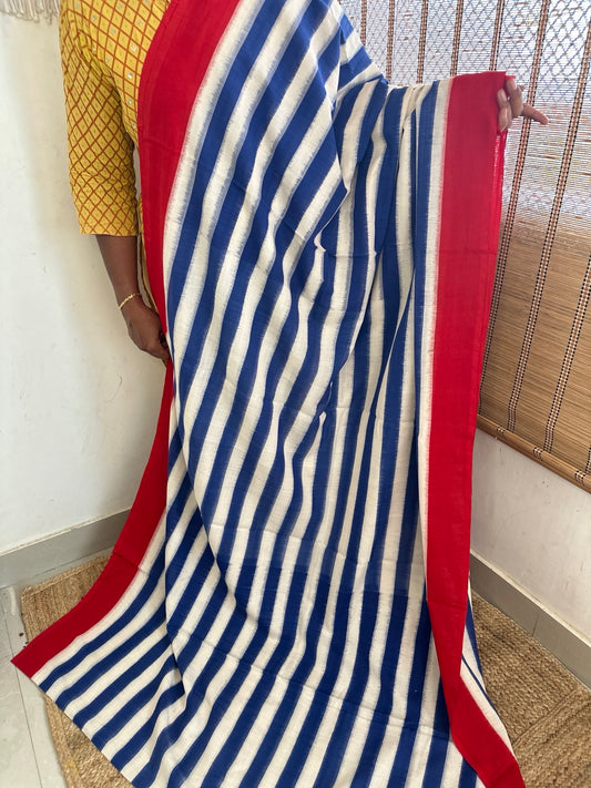 Double Ikkat Striped Handloom Saree