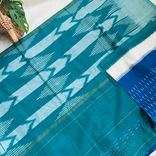 Sold outIkkat BlueGreen Handloom Saree