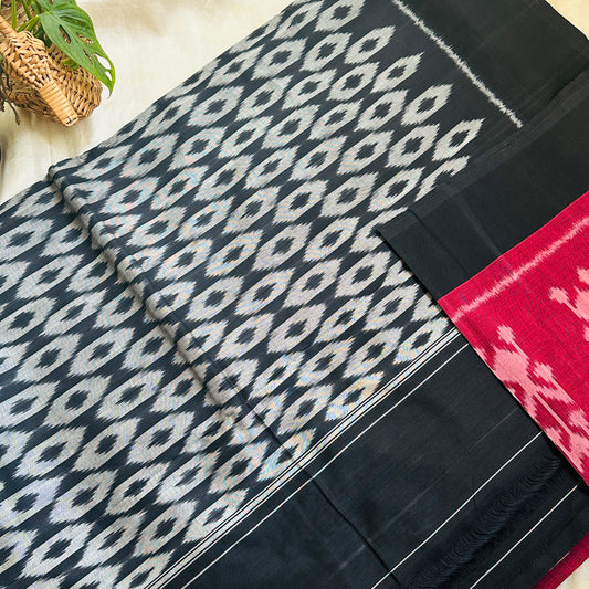 Ikkat MaroonBlack Handloom Saree