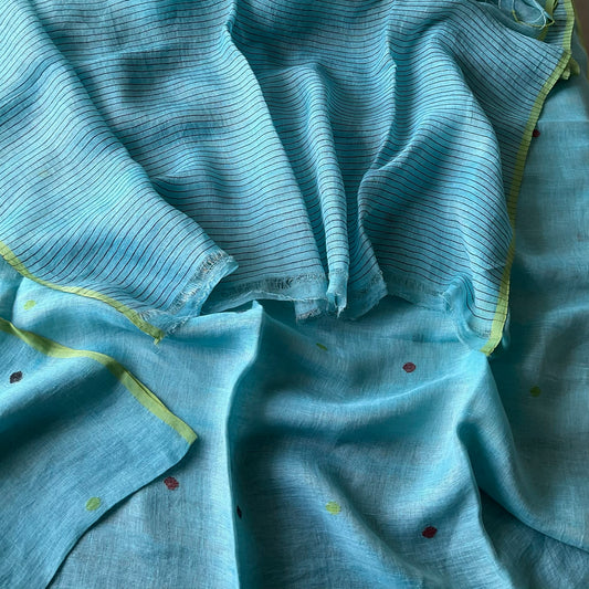 Pure Linen Blue Saree