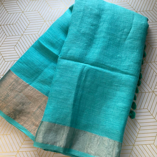 Linen Teal-Blue Saree