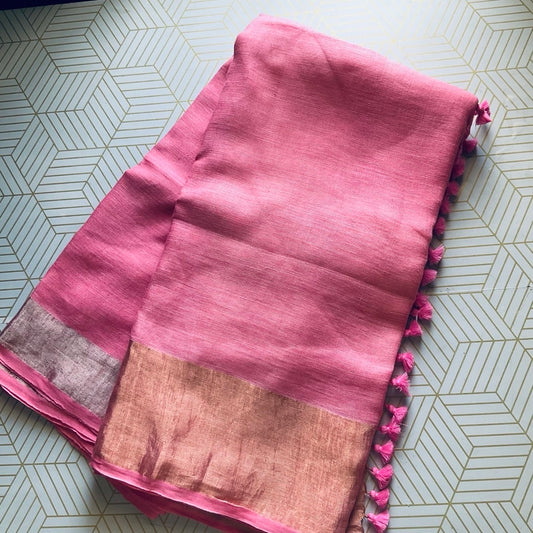 SaleLinen Pink Saree