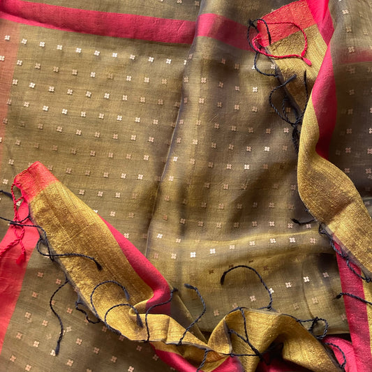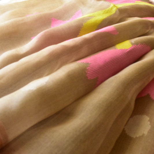 Maslin Brown Jamdani Saree