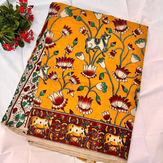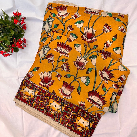 Cotton Yellow Kalamkari Saree - KCSKH10