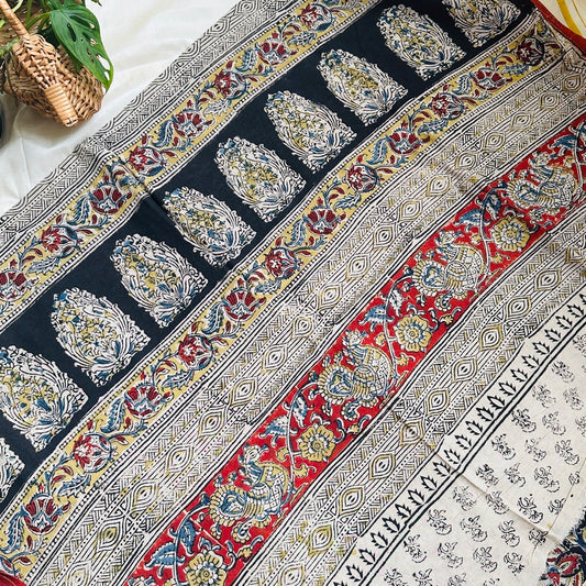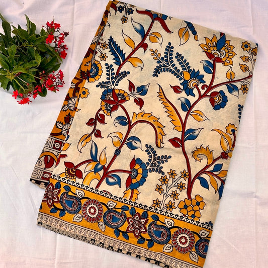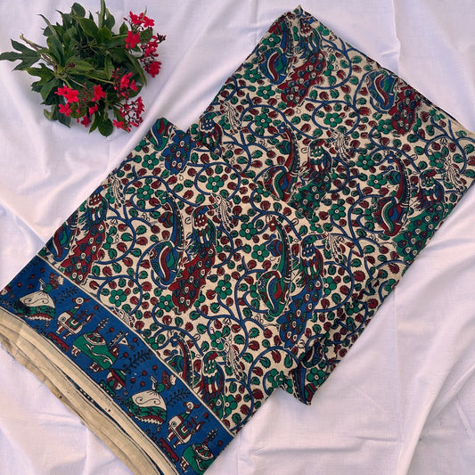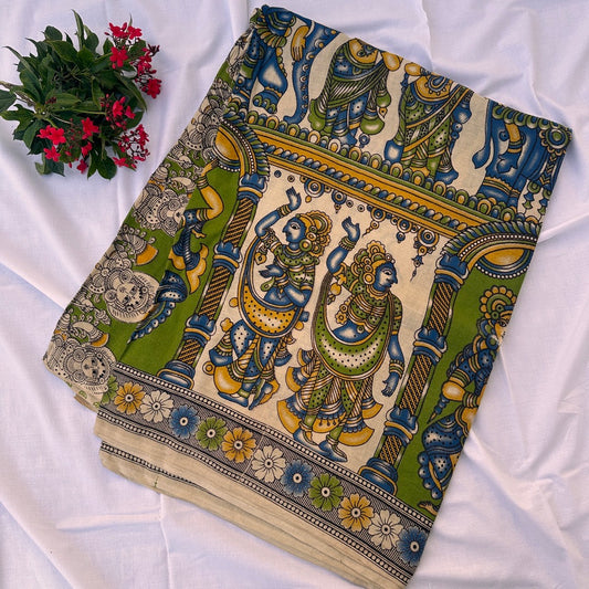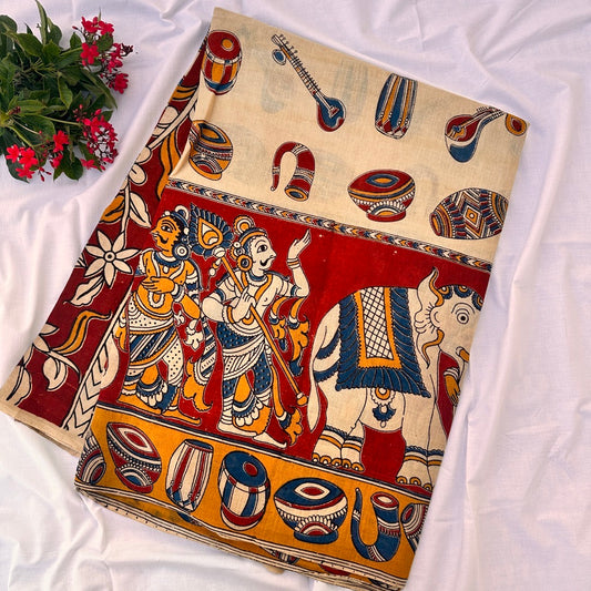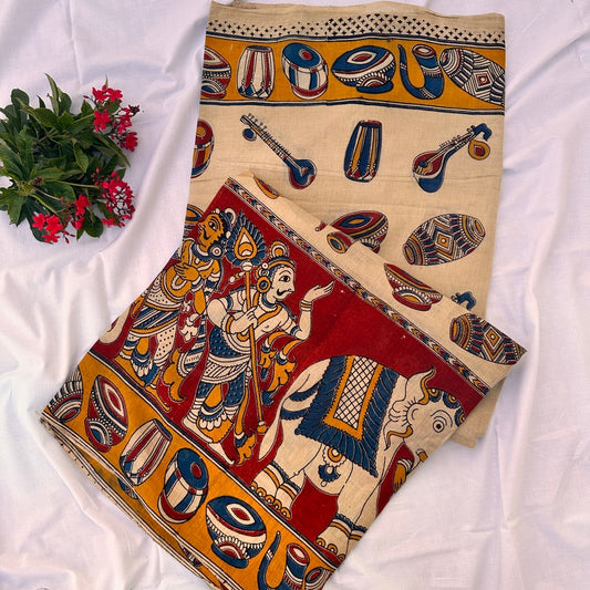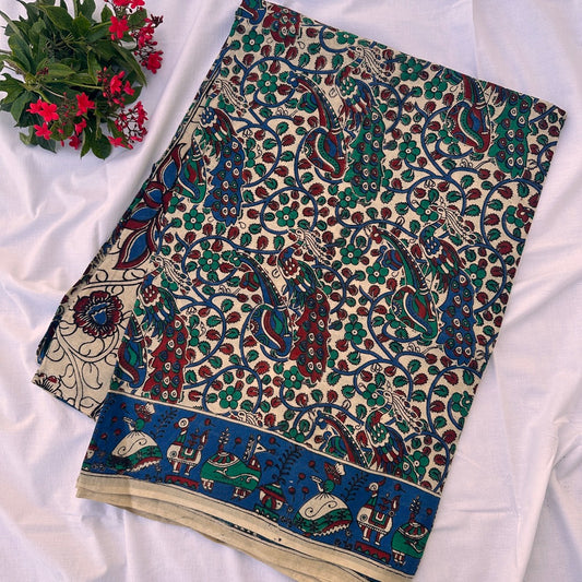 Cotton Halfwhite Kalamkari Saree