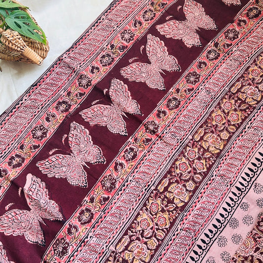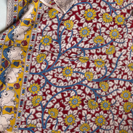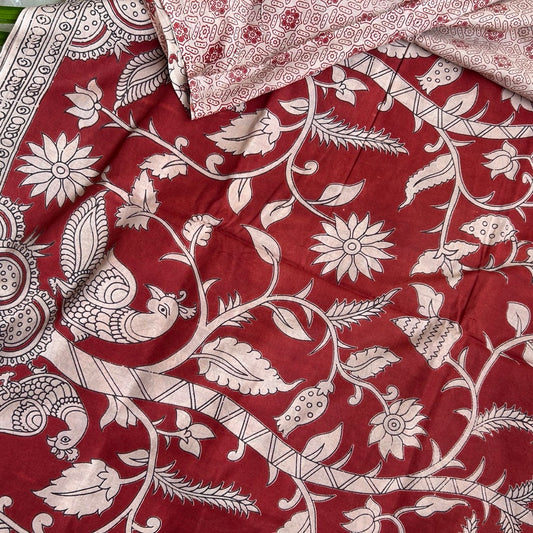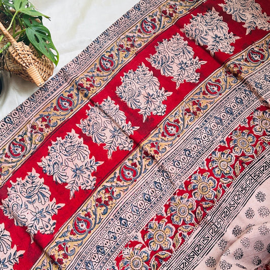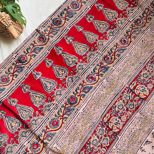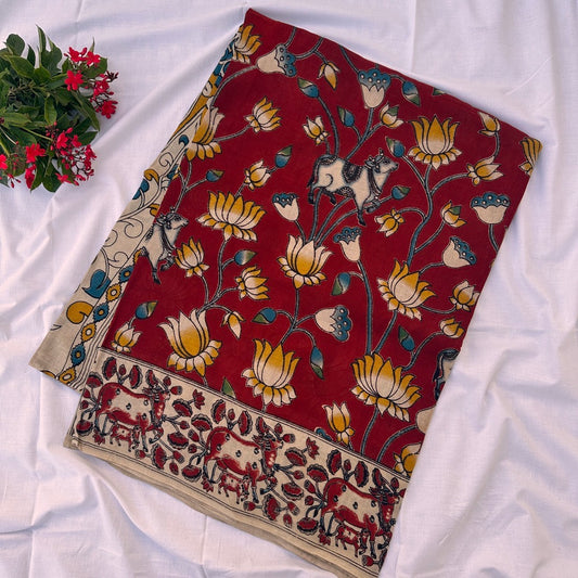 Cotton Red Kalamkari Saree -