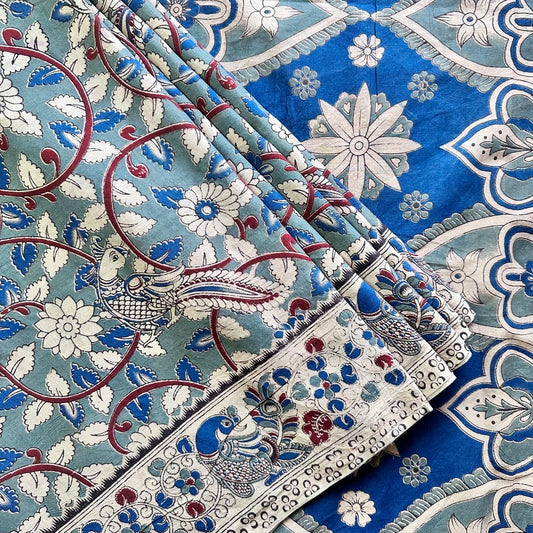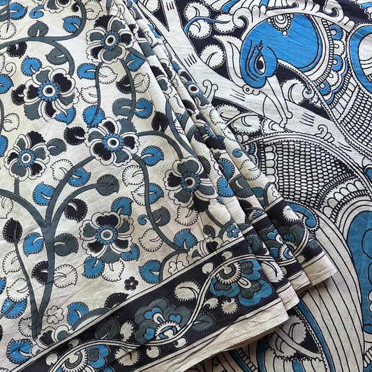 Cotton Blue Kalamkari Saree - KCSKH08