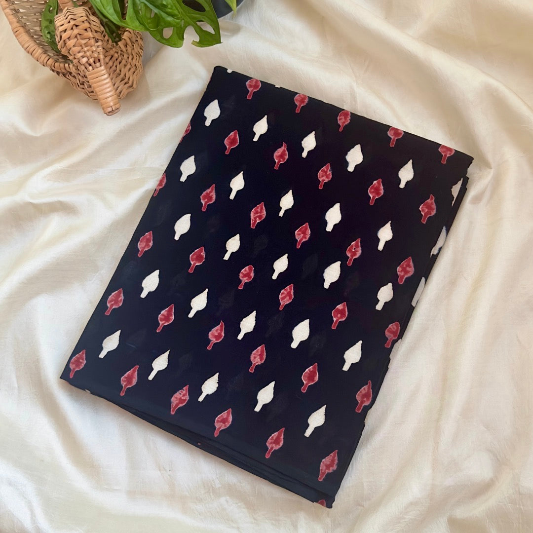 Saree Description : Mul mul Handprinted saree, The body of the saree is black color with Handprinted abstract pattern. The saree is border less.. The saree is super soft and perfect for Office/Casual wear.