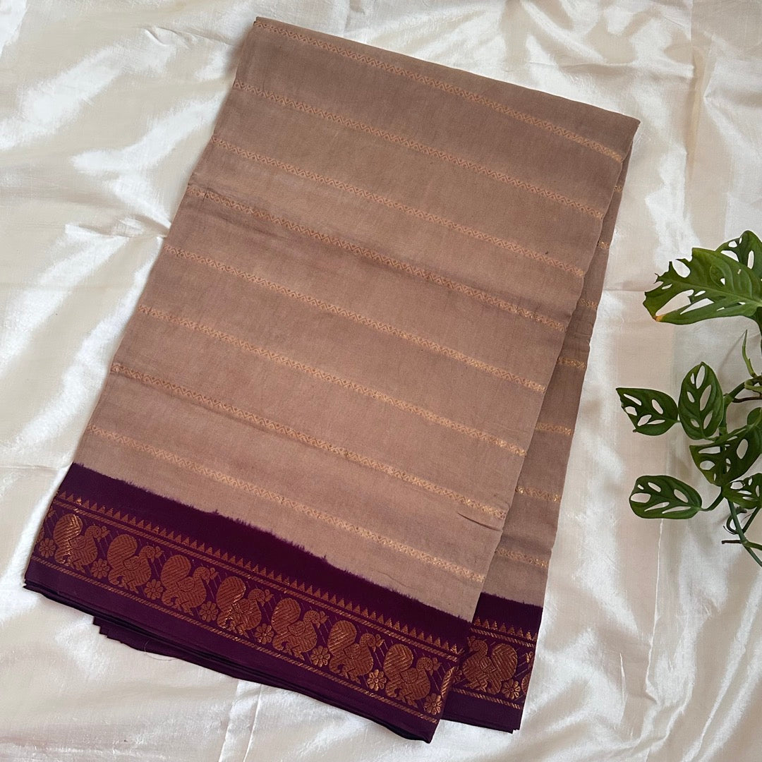 Saree Description : Sungudi Veldari saree in Beige, accented with a striking Maroon border, blends simplicity with elegance. Its lightweight fabric and subtle design make it a versatile choice for everyday wear or understated celebrations.
